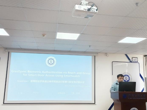 時佳樂同學分享的主題是「GrasOpen:Biometric Authentication via Reach-and-Grasp for Smart Door Acces Using Smartwatch」。他介紹了一種專為開門場景量身定製的創新生物識別認證系統GrasOpen,該系統採用帶有IMU的智能手錶來跟蹤和分析手臂運動。GrasOpen顺利获得利用伸手和抓握動作的獨特特性來應對關鍵挑戰,消除了用戶記憶複雜動作的必要性,並避免了等待面部識別等冗餘動作。最初,GrasOpen提出了一種輕量級模型,用於從日常活動中辨別開門動作。然後,GrasOpen集成了一種互補濾波器方法來捕獲開門動作中的多樣性相關特徵。這些特徵隨後顺利获得修改後的ConvBoost模型進行處理,以實現精確的用戶身份驗證。實驗結果顯示,GrasOpen在活動識別和身份認證方面的準確率分別為98.78%和98.65%。