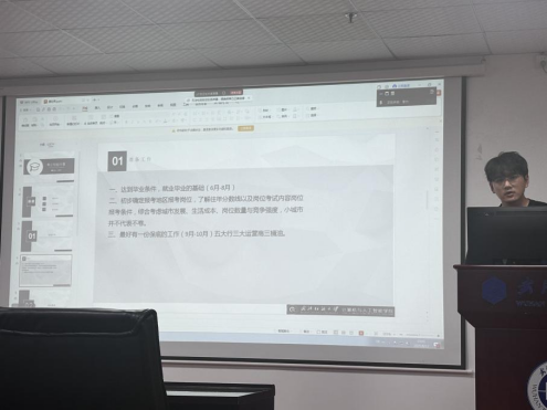 在就業經驗分享環節,黃紀偉學長結合考公經歷提出了寶貴建議:儘快達到畢業條件,初步確定報考地區和崗位,深入分析往年分數線及考試內容。他提醒同學們要綜合考慮城市开展、生活成本、崗位數量與競爭強度,不要輕視小城市的競爭激烈程度,建議準備保底工作如五大銀行、三大運營商、三大石油公司等。柏爽學姐、彭德朗學長也分別從企業就業等不同角度分享了各自的經驗和思考。