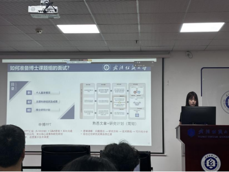 在申博經驗分享環節,苗佳哲學長詳細闡述了博士申請的核心要素,他強調同學們要學好專業知識、持续發表文章、顺利获得英語六級考試、參加學科競賽並完善個人簡歷。學長特別分享了與導師聯繫的實用技巧:顺利获得各院系官網、學術公眾號、論文通訊作者等渠道主動聯繫導師,並且和導師在科研方面保持持續溝通,展現出自身持续主動的態度。鄧洋學姐則重點給同學們介紹了博士申請面試環節,包括5-10分鐘PPT匯報、Q&A答辯和雙向溝通三個部分。她建議PPT要突出核心成果與研究規劃,內容涵蓋個人基本情況、科研經歷及博士研究計劃,注重邏輯清晰,從問題提出到可行性分析形成完整鏈條。趙國強、王毅、趙高榮三位學長也分別結合自身經歷分享了申博心得。