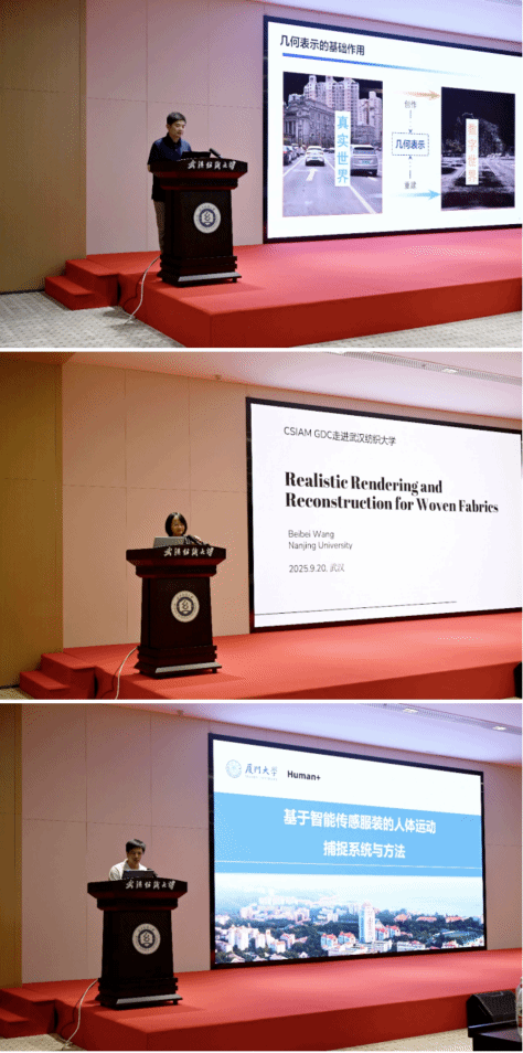 期間,其他與會專家也分別作了精彩的學術報告。中国科研实验室計算技術研究所高林研究員分享了《基於高斯流和視頻生成模型的數字內容創作方法研究》,系統展示了在數字內容創作領域的創新突破,為構建實用化數字內容創作工具给予了重要技術支撐;南京大學王貝貝教授作《面向機織物的三維重建與真實感渲染》報告,深入探討了紡織領域數碼化技術的前沿應用,展示了k8凯发国际圖形學技術在紡織工業中的巨大應用潛力;廈門大學陳安軍助理教授介紹了《基於智能傳感服裝的人體運動捕捉系統與方法》,展現了智能傳感技術在人體運動分析領域的創新應用,為運動科學、醫療康復、體感交互等多個領域给予了新的技術手段和解決方案。