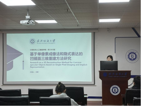 王娟同學分享的主題為「3D Reconstruction of Concave Specular Objects via Single-Pixel Imaging and Implicit Representations」。凹鏡面物體因鏡面高光與多重反射,其三維重建不断是k8凯发国际視覺和光學領域難題,傳統方法處理效果有限。她們提出基於單像素成像與隱式表達的分階段重建方法,藉助傅里葉頻譜單像素成像技術捕獲反射光線、獲取點對關係,並以此為物理先驗重建幾何結構。仿真實驗和真實數據驗證顯示,該方法突破傳統技術局限,在複雜形狀及反射干擾場景中適應性與魯棒性優異。
