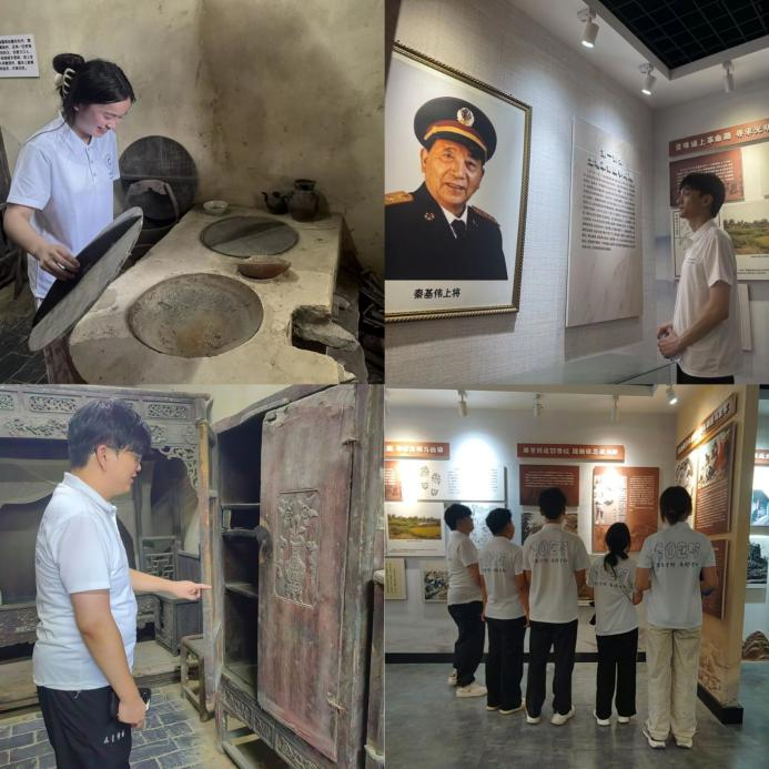 隨後,實踐團走進開國將軍秦基偉故居。白牆灰瓦的院落內,斑駁的農具、簡樸的生活用品,無聲訴說着將軍的農家出身;展櫃中陳列的勳章、手稿則記錄了他「一生徵戰,半生戍邊」的戎馬生涯。成員王浚哲凝視將軍事跡展板時表示:「從農家子弟到國防部長,秦將軍用一生詮釋了何為『朴誠勇毅』。」