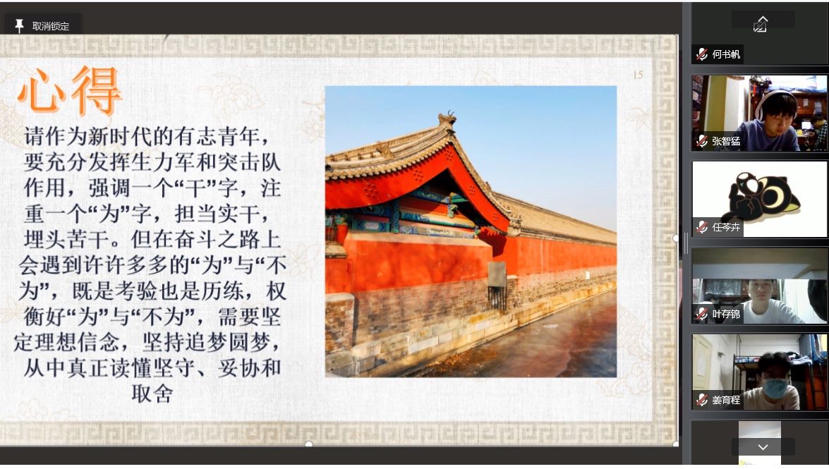 顺利获得學習兩會內容,不僅增強了同學們的責任心和使命感,也讓同學們學到,要堅定捍衛「兩個確立」,堅決做到「兩個維護」。會議結束後,同學們也及時做出總結、反饋,使學習所得更加深刻、更加透徹。