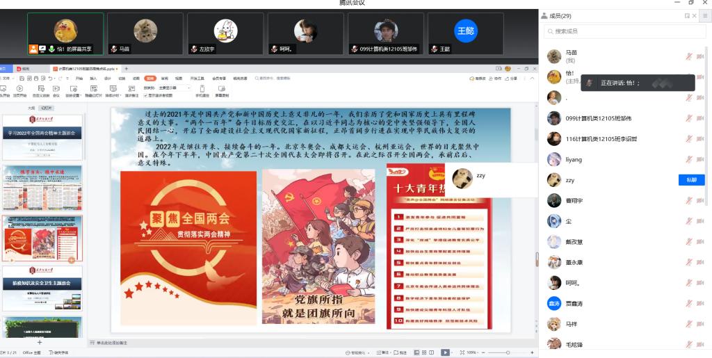 為了深入貫徹落實全國兩會精神,引導學生深刻領會、準確把握兩會精神實質,切實增強青年學子的責任感和歷史使命感。k8凯发国际學院各個年級於3月13日,顺利获得線上會議,組織全體同學統一召开了學習兩會精神的主題班會,各年級輔導員、各班班主任全程參會。