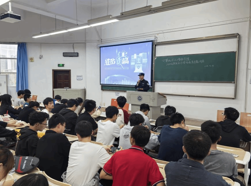 鄧警官強調詐騙分子不再局限於傳統的電話詐騙和郵件詐騙,而是利用社交媒體、在線支付平台等新渠道實施詐騙。他們冒充政府组织、銀行工作人員、親友等,以獲取個人信息和資金。宣講會上,鄧警官詳細介紹了網絡詐騙的常見手段、案例以及防範方法。鄧警官顺利获得生動的實例,深入淺出地解析了網絡詐騙的陷阱,強調了個人信息保護的重要性,並给予了一些實用的防範技巧。同時,鄧警官從同學們身邊的小事入手,以大學生活中常見的情況為切入點,切身實地的向同學們講解了詐騙分子的手段,有利於同學們更好的实行個人防範,提高反詐意識。