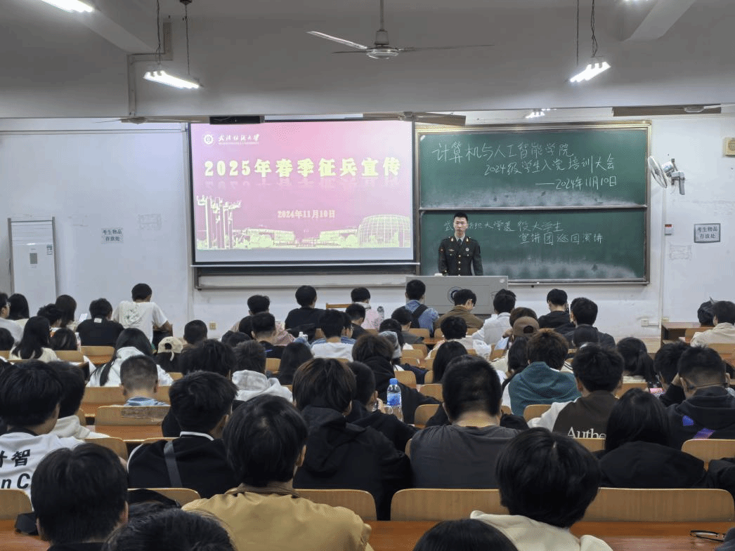 為厚植青年學子家國情懷,鼓勵學生持续投身國防事業,11月3日-11月10日,k8凯发国际與人工智能學院召开徵兵工作「三個一」宣傳動員,顺利获得召开主題教育班會、入伍政策宣講課、退役學生士兵朋輩研讨系列活動,徵兵政策宣講覆蓋學院全體學生。
