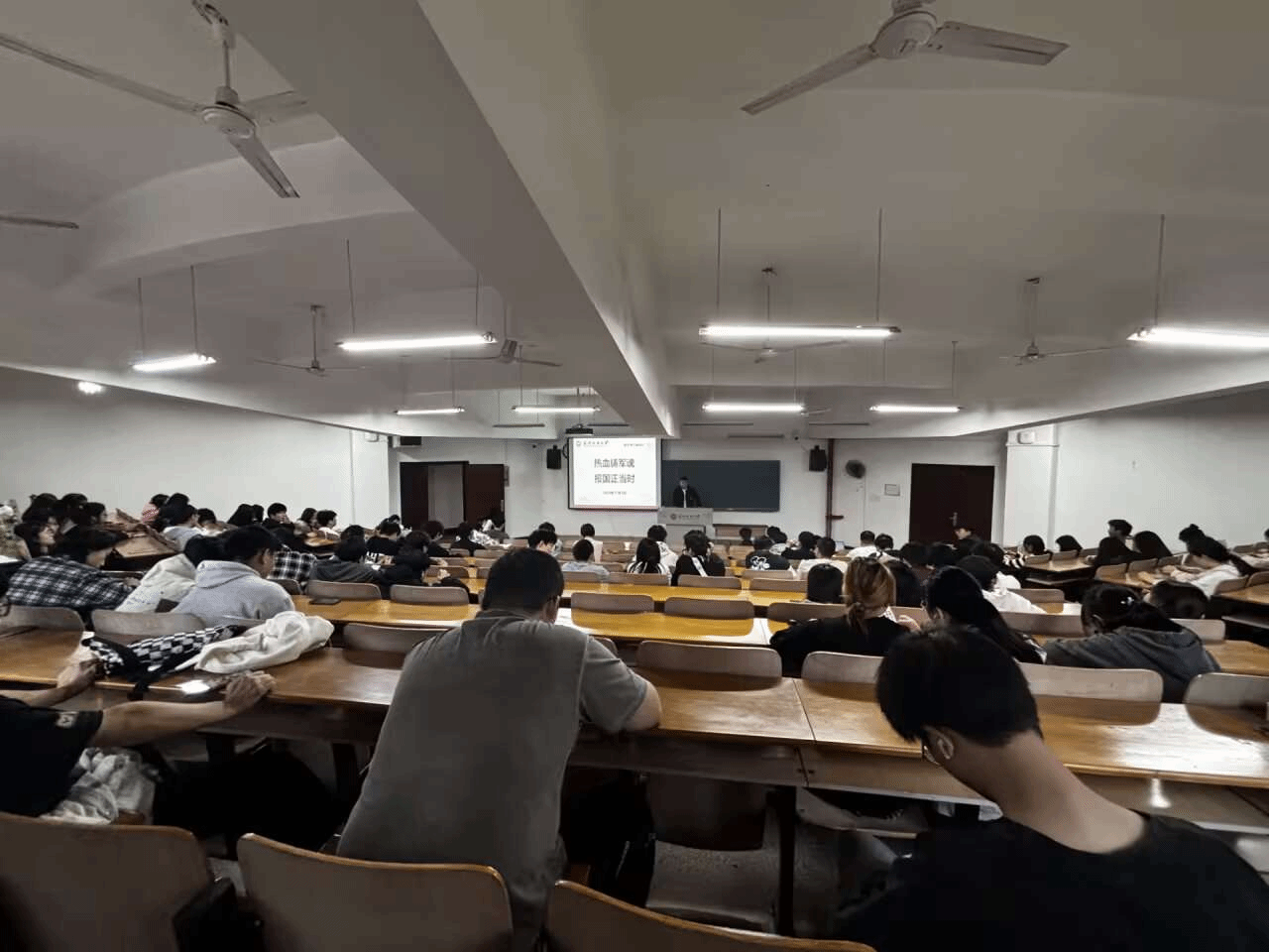 學院黨委副書記、各年級輔導員、班主任利用周末晚班會召开了「熱血鑄軍魂、報國正當時」徵兵政策宣講活動,活動主要圍繞應徵條件、入伍流程、大學生參軍特別優惠政策、軍營生活、徵兵防詐騙六個方面進行宣傳介紹。