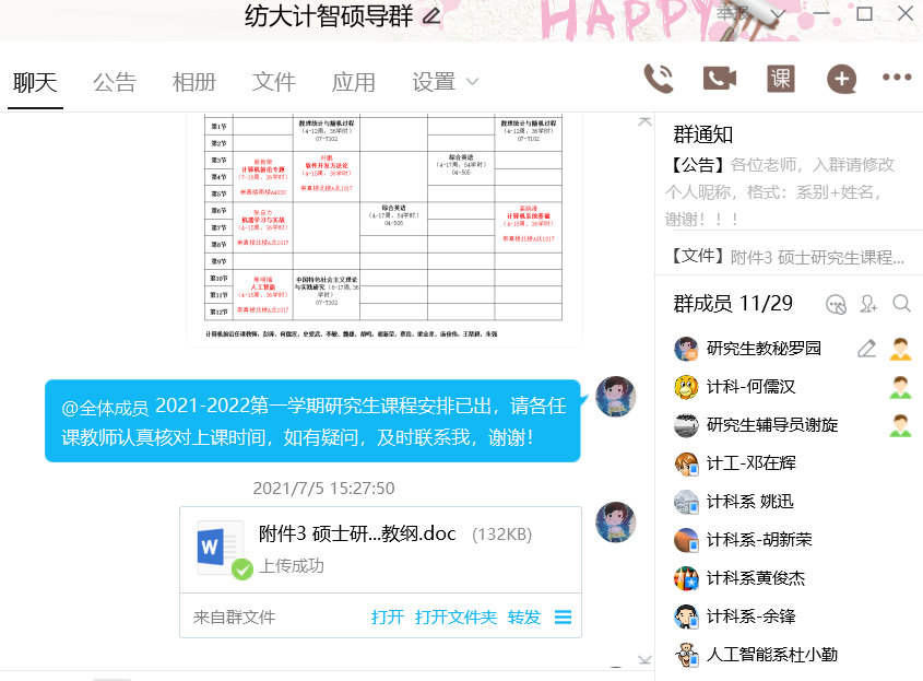 為提高研究生研學效率效果,學院率先建立了研究生導師QQ群,科學高效對不同類別的研究生進行專項服務管理。