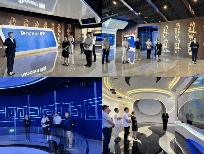 會前,在邵世韜陪同下,胡新榮一行參觀了騰訊展廳,深入分析騰訊的开展歷程、業務構架、產業佈局、願景與使命。