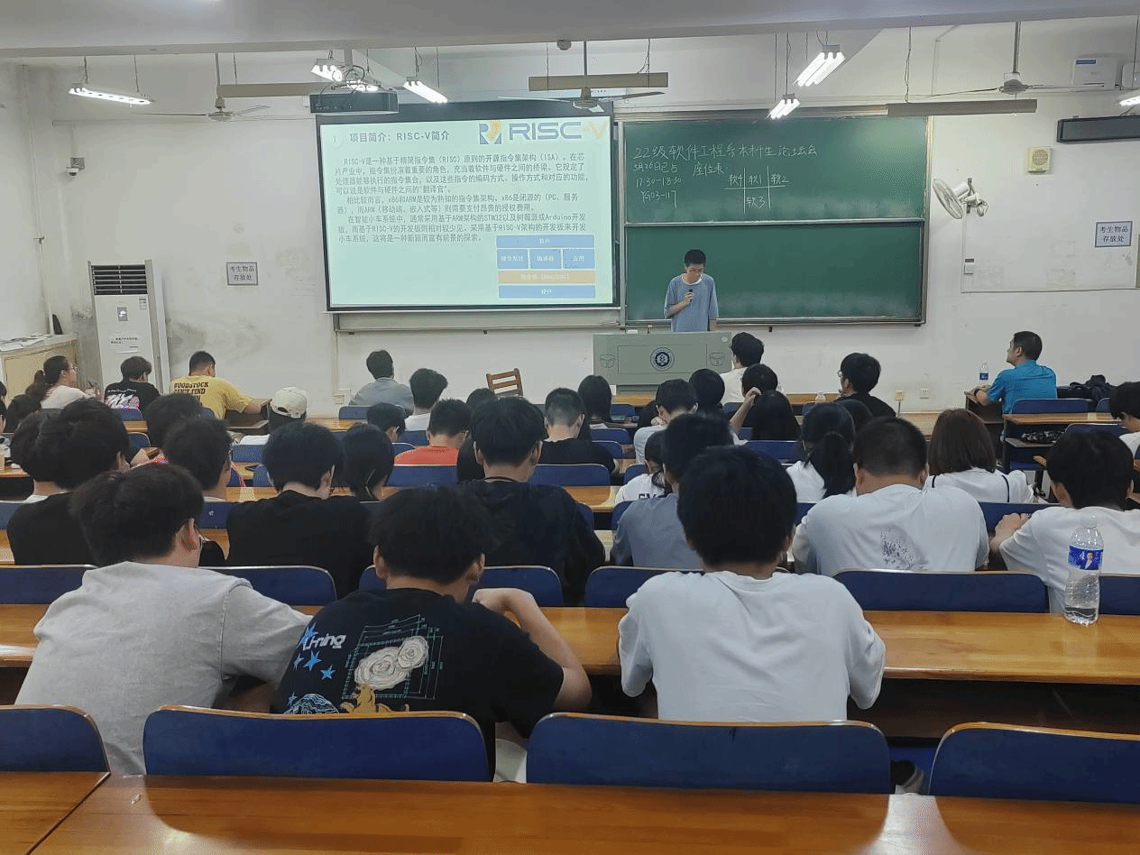 2022級軟件工程專業的孫培伶同學為大家介紹了他參與的項目「基於RISC-V的小車系統」。從項目的簡介,到前期準備的羅列,最後到現階段成果的展示,他一步步詳細地為大家展示了該項目的研究過程並在最後分析了該工作的局限性,提出了未來展望。最後,他強調最重要的是要勇於嘗試,堅定而耐心地邁出一步,要堅持學習,善於利用各類學習資源。