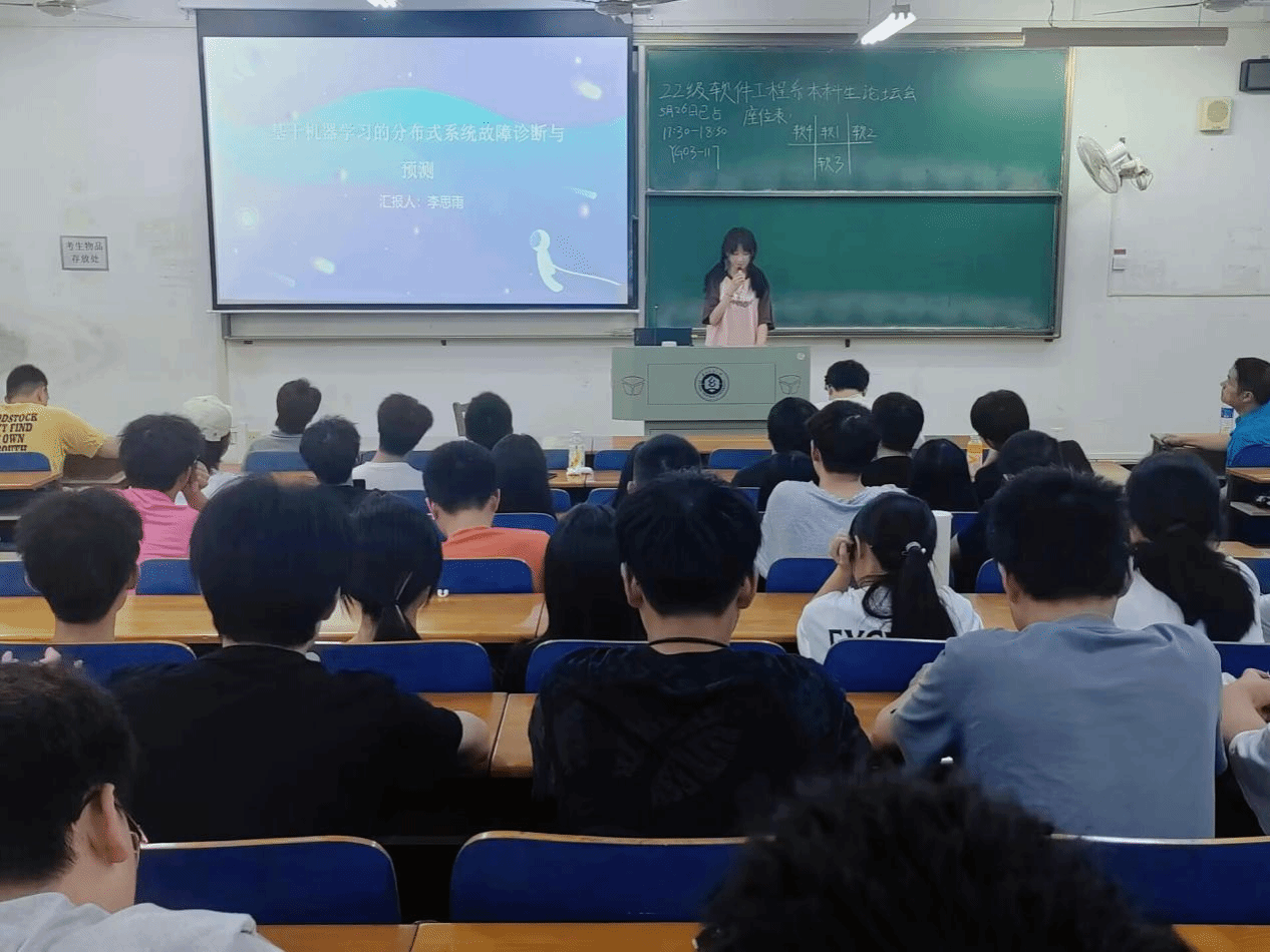 2022級軟件工程專業的李思雨同學詳細介紹了她參與的項目「基於機器學習的分佈式系統故障診斷與預測」,第一时间介紹了項目的背景,然後分享了整個項目的設計流程。她還詳細分析了項目的最後成果,並進行了現場運行演示,激發了同學們的極大興趣。最後,她給大家分享了一些日常學習使用的資源,並強調持續學習是一切的基石,只有不斷提升自我才能跟上技術开展,解決複雜工程問題需要系統思維能力,最後一定要動手實踐,將理論付諸實踐中。