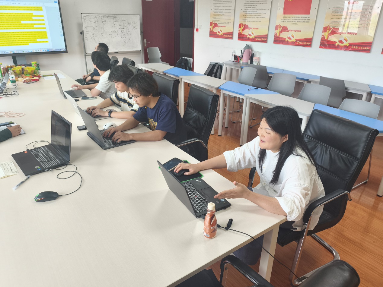 圖3 萬紅艷老師與學生團隊討論申報書修改方案