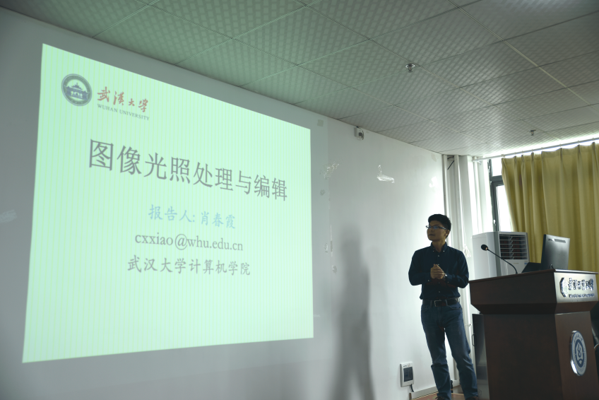 肖春霞教授介紹了研究課題「圖像光照處理與編輯」的前期課題研究進展作了相關匯報,包括圖像高光檢測研究和本徵圖片分解研究。在高光檢測研究中,針對傳統高光檢測中不能把場景中亮度比較高的材質和高光區分開來和不同場景高光強弱有別需要設置不同閾值的缺陷,設計了多尺度網絡和對比特徵抽取模塊,並對後期的工作做了詳細介紹。在本徵圖片分解研究中、圖像與視頻的陰影消除和編輯的相關研究進展做了系統的總結和展示。