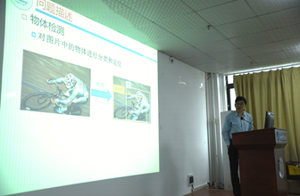 劉文教授介紹了研究課題「基於弱監督學習的物體檢測」,對基於弱監督學習的物體檢測的課題研究進展作了相關匯報,就圖像中的物體檢測、語義分割技術的开展簡介,圖像檢測技術在自動駕駛、動態監控、人機交互場景的需求與應用,匯報了在具體研究中的檢測需求、實驗數據生成、算法思路流程、實驗檢測結果等研究內容,分析了多項核心算法研究的算法性能,並對訓練效率做了精彩總結。