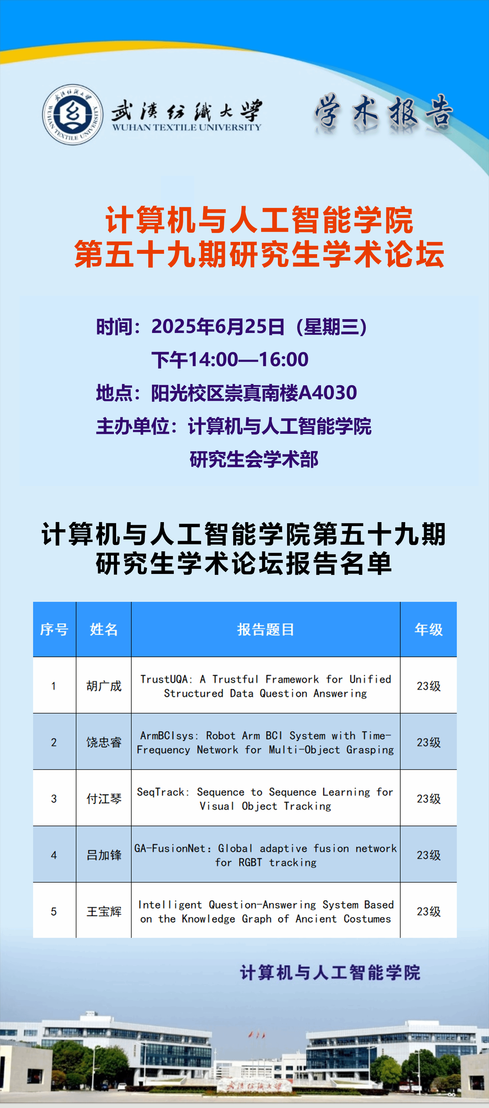 【學術預告】:k8凯发国际與人工智能學院第五十九期研究生學術論壇-武漢紡織大學-k8凯发国际與人工智能學院