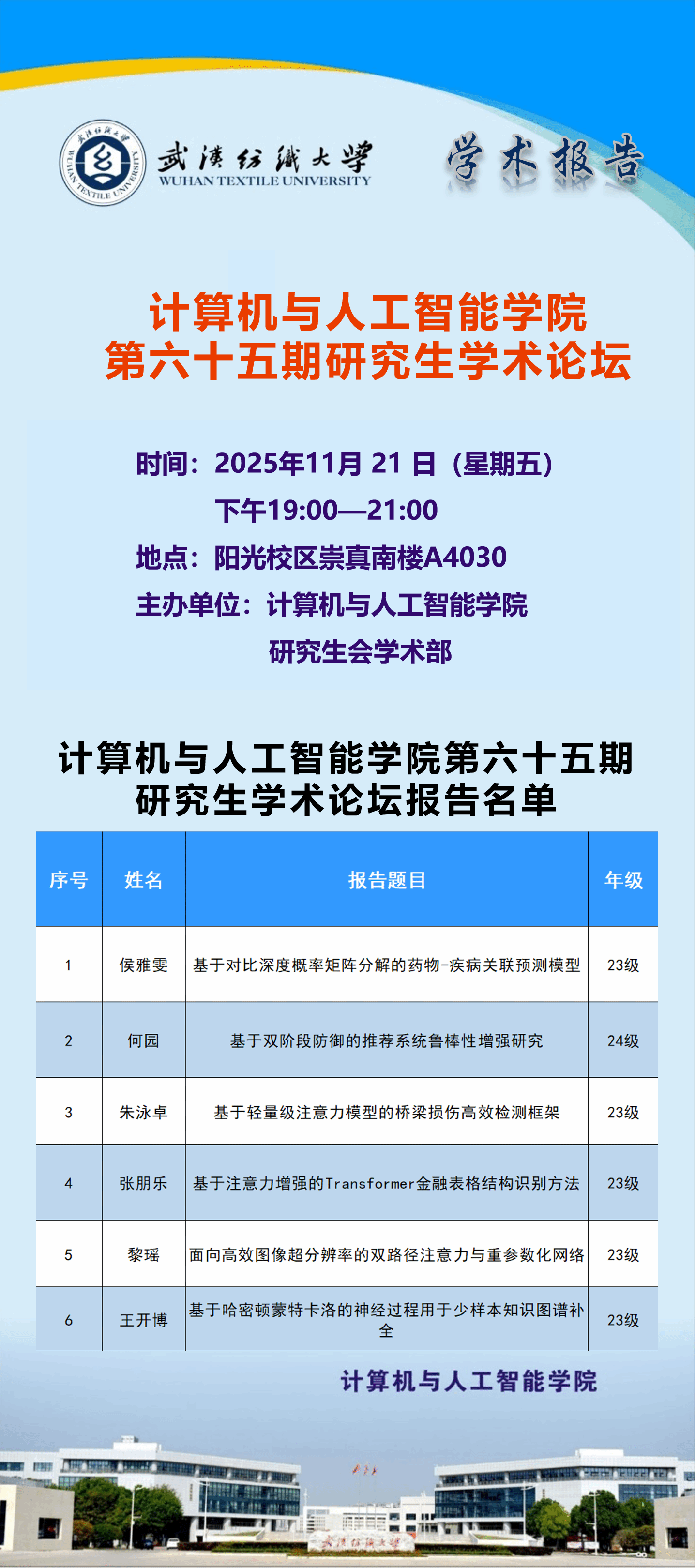 【學術預告】k8凯发国际與人工智能學院第六十五期研究生學術論壇-武漢紡織大學-k8凯发国际與人工智能學院