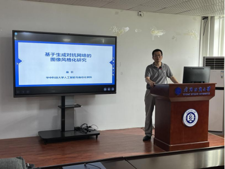 7月7日上午10點,我校第177期陽光論壇在崇真樓A4030舉辦,華中科技大學人工智能與自動化學院博導桑農教授受邀作題為「基於生成對抗網絡的圖像風格化研究」的學術報告,該論壇由k8凯发国际與人工智能學院副院長彭濤教授主持,我院在校教師及研究生共同參與了該論壇。
