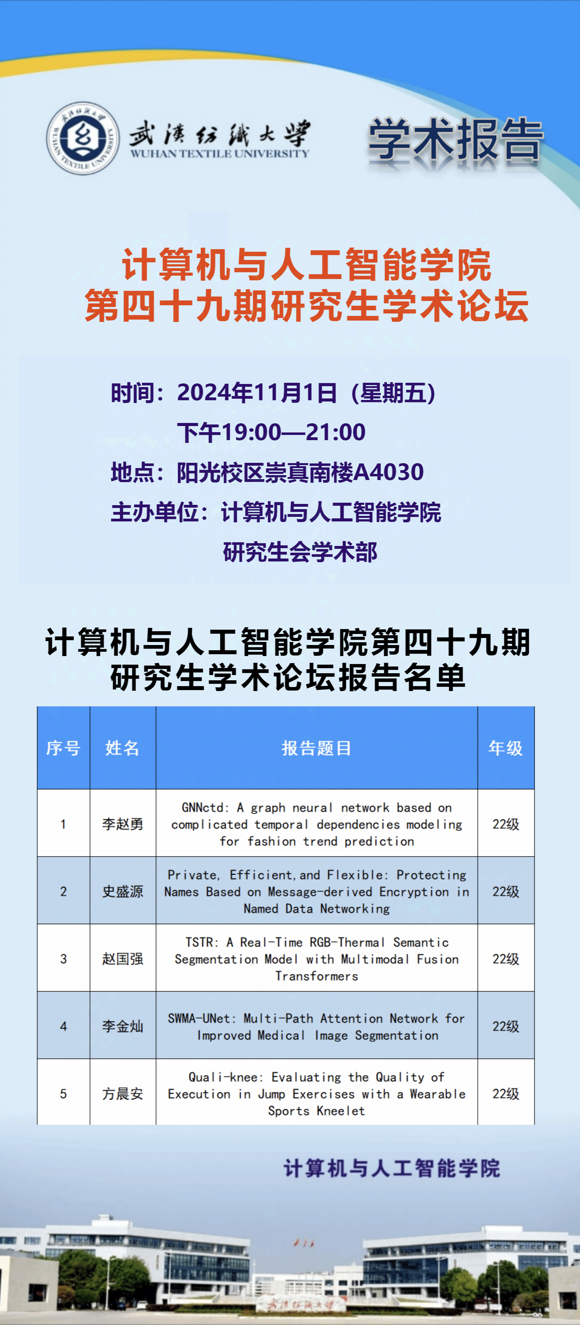 【學術預告】:k8凯发国际與人工智能學院第四十九期研究生學術論壇-武漢紡織大學-k8凯发国际與人工智能學院