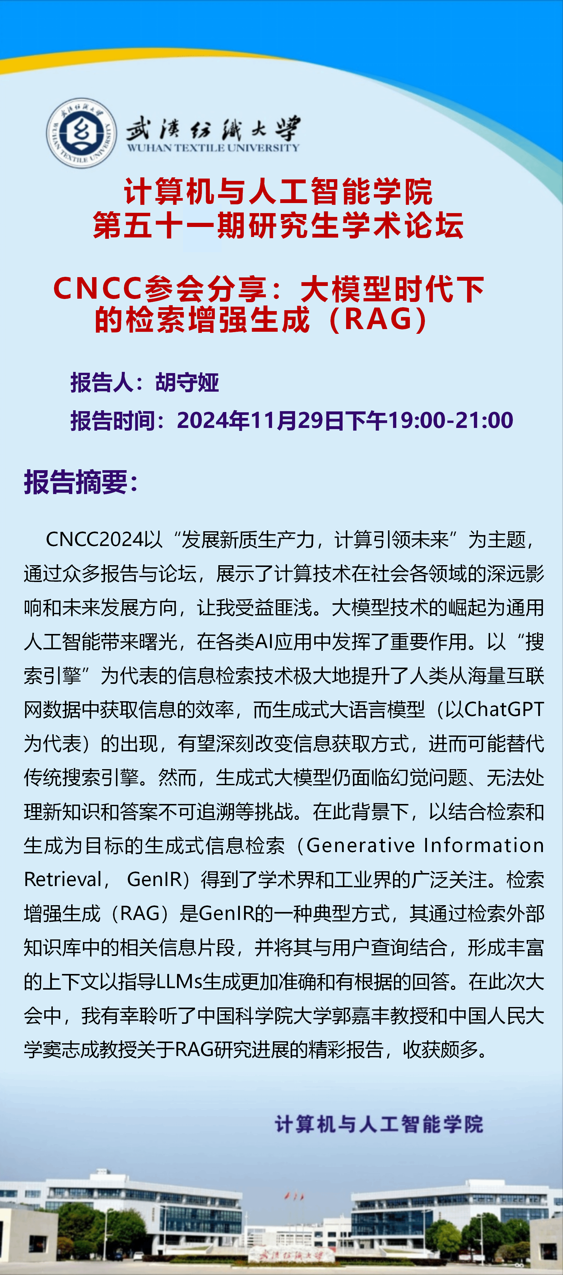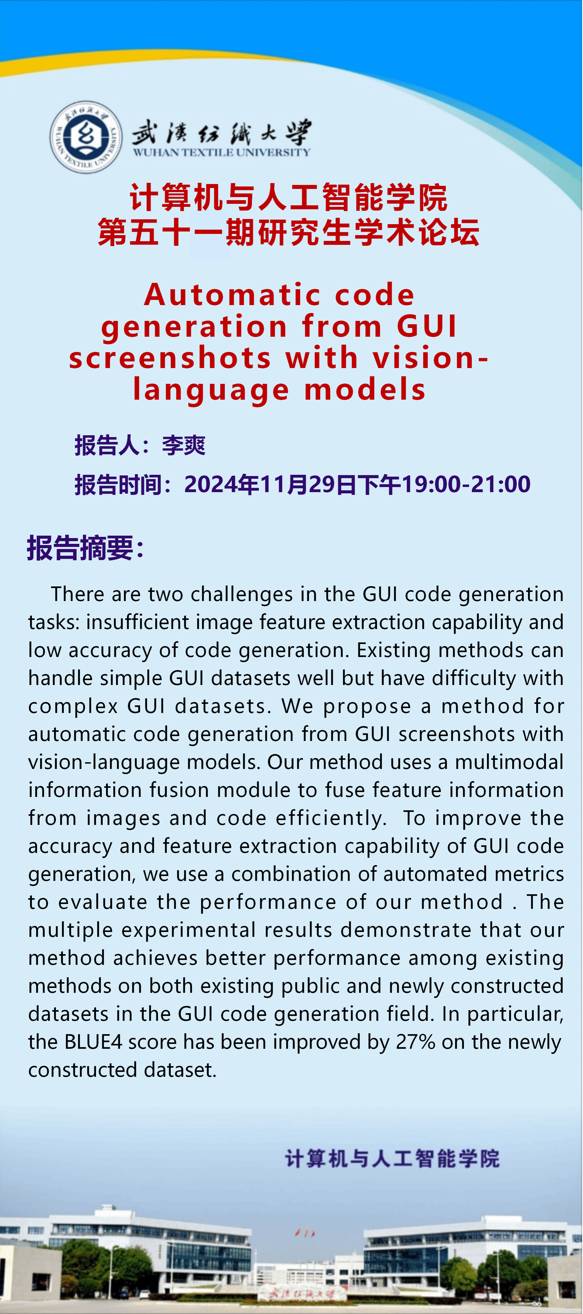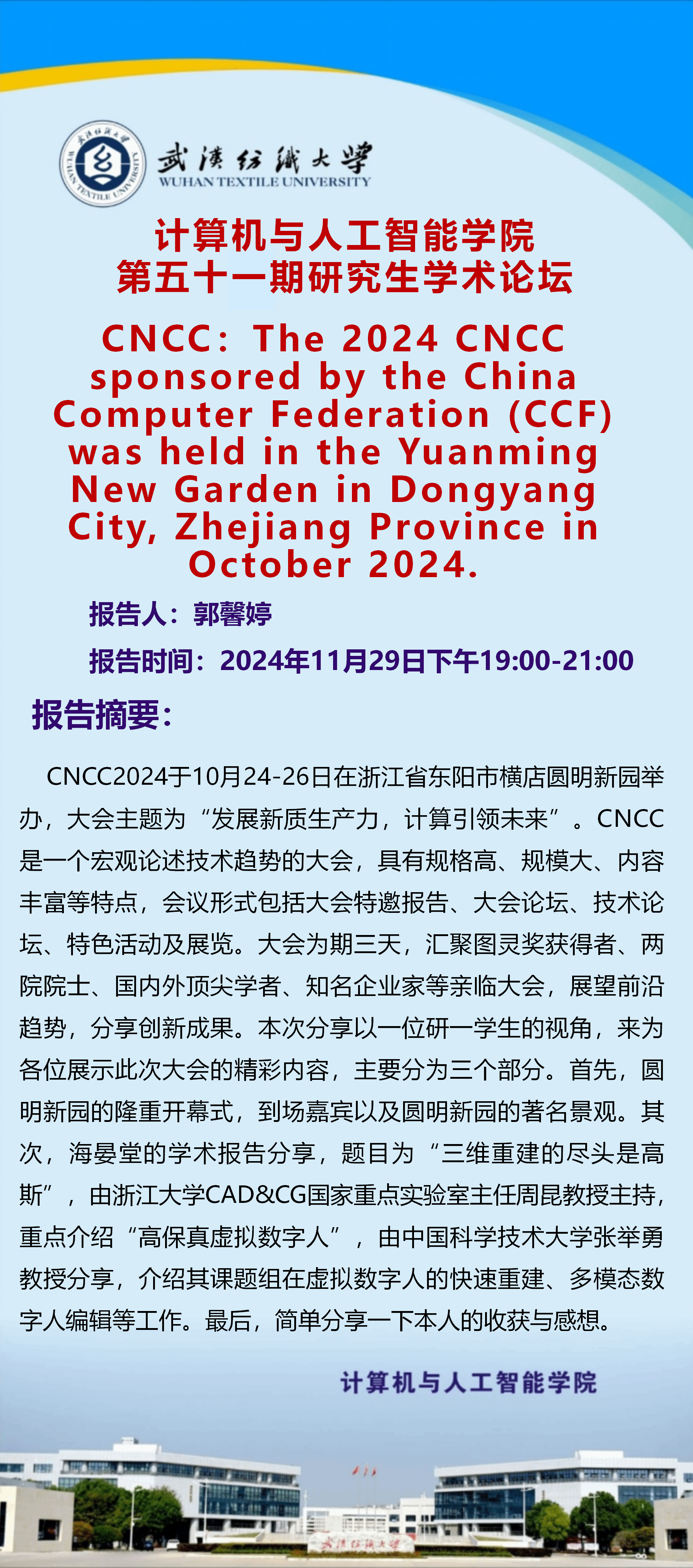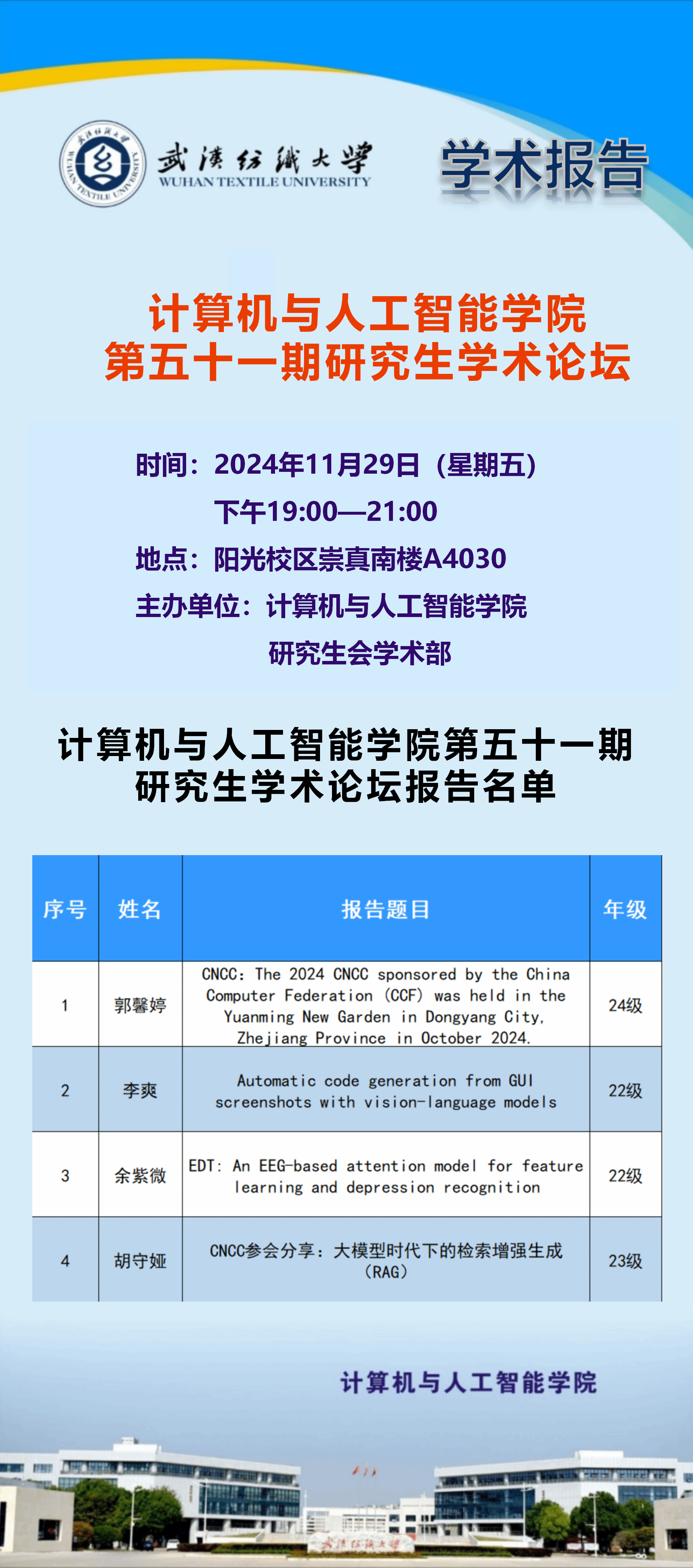 【學術預告】:k8凯发国际與人工智能學院第五十一期研究生學術論壇-武漢紡織大學-k8凯发国际與人工智能學院