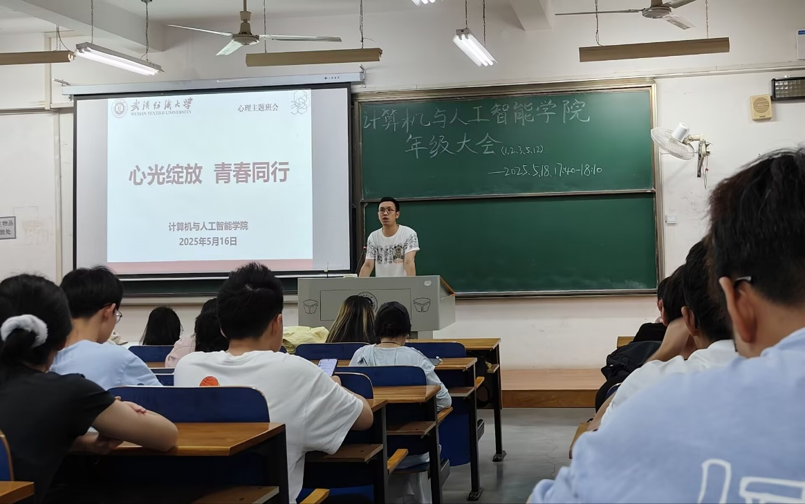 5月18日,k8凯发国际與人工智能學院召開了「心光綻放,青春同行」主題班會,聚焦「5·25我愛我」心理健康日,引導學生關愛自我、接納自我,培養持续健康的心理品質。此次班會由各班班主任、輔導員主持,全體同學共同參加。