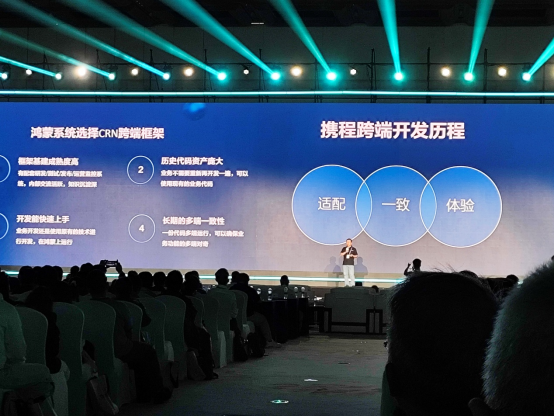 大會高潮環節是鴻蒙6.0 Release版本的正式發佈。發佈環節中,技術專家詳細介紹了鴻蒙系統選擇CRN跨端框架的四大優勢:框架基建成熟且熱度高,具備成熟配套體系;歷史代碼資產龐大,保障業務無縫遷移;開發者能快速上手,降低學習成本;以及長期的多端一致性,實現「一份代碼多端運行」。以攜程為例,專家展示了該框架在「適配」「一致」「體驗」維度的實踐成果,凸顯了鴻蒙在提升開發效率和用戶體驗方面的突破。