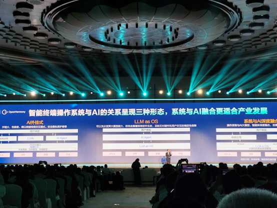陳海波在演講中深入分析了智能終端操作系統與AI的融合趨勢。他提出,當前AI與操作系統的關係呈現三種形態:AI外掛式、LLM as OS以及系統與AI深度融合。陳海波引用《道德經》中「一生萬物,萬物歸一」的哲學思想,闡釋了鴻蒙的頂層設計理念。他表示,鴻蒙創新性推出Agent TSG技術框架,旨在成為國際通用範式,實現AI Agent與操作系統終端的無縫交互,以及外接AI與系統終端的無痛換源。類比於Type-C接口的標準化優勢。這一框架有望解決傳統模式下的開發瓶頸和安全隱憂,兼容現有軟件生態,有助于產業向智能化、高效化升級。
