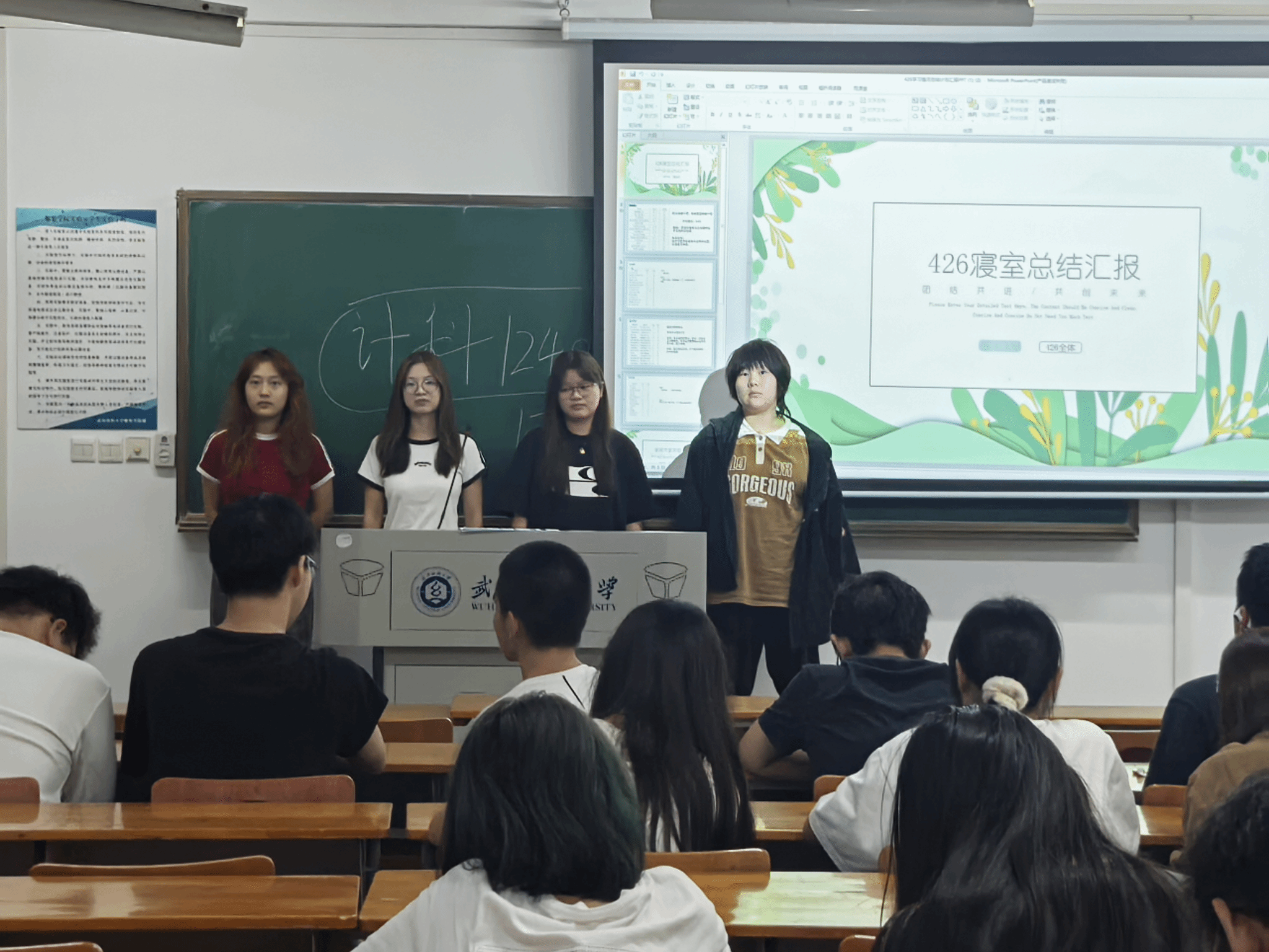 會議伊始,學習委員李炫簡要介紹了總結會的目的與流程,強調顺利获得回顧過往、研讨經驗,為班級新學期的整體進步奠定基礎。隨後,各寢室代表依次上台,結合PPT展示,圍繞學習情況、生活管理、活動參與及未來計劃等方面進行分享。