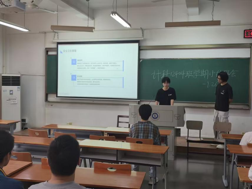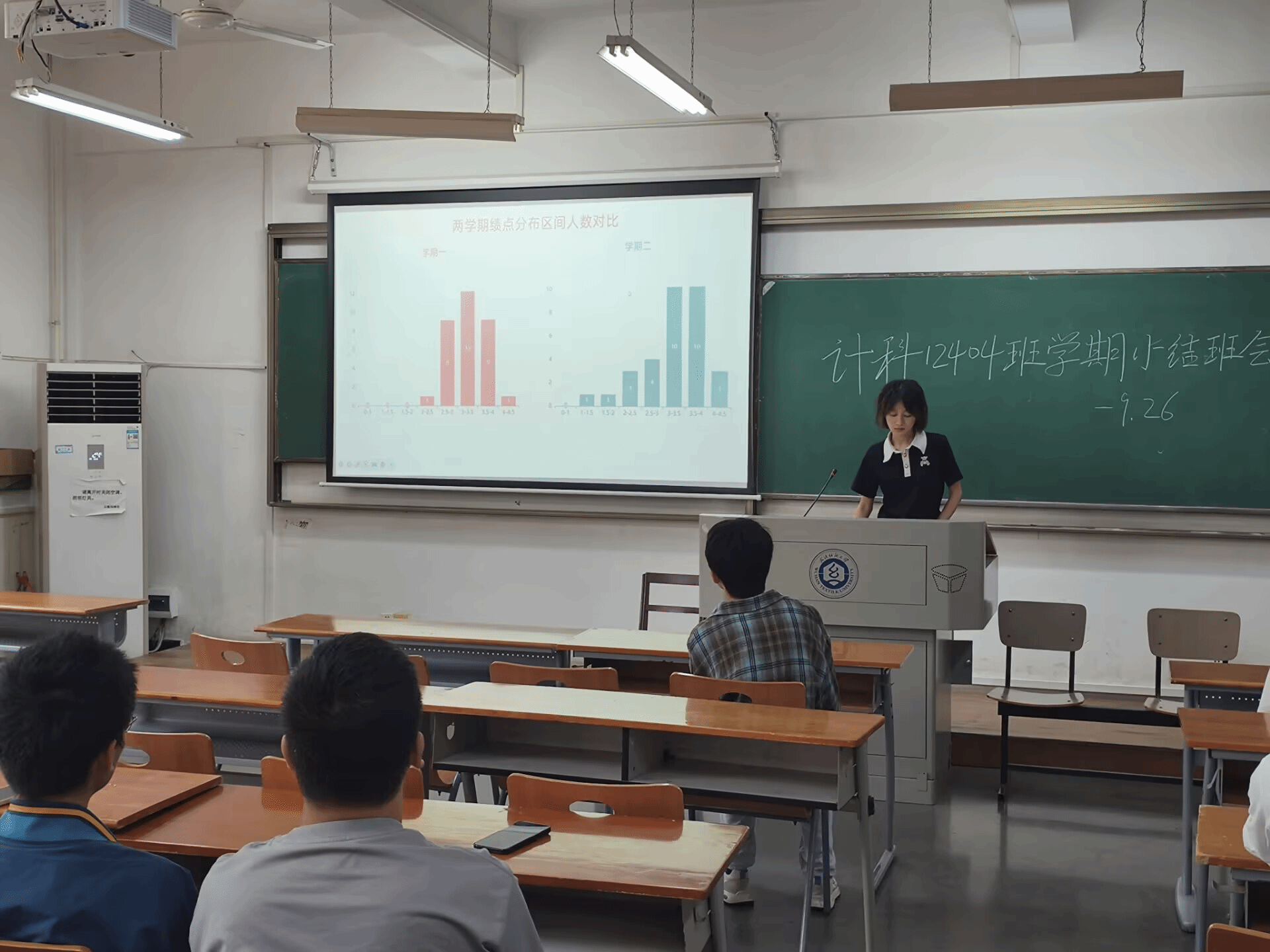 為全面總結班級建設成果,促進寢室間學習研讨,9月26日下午,k8凯发国际類12404班在3號教學樓204教室舉行2024-2025學年第一學期總結研讨會。本次班會創新採用「寢室長匯報制」,由全班8個寢室的同學依次登台總結。班主任余鋒老師和輔導員李港老師共同參與,班會由班長毛超強主持。