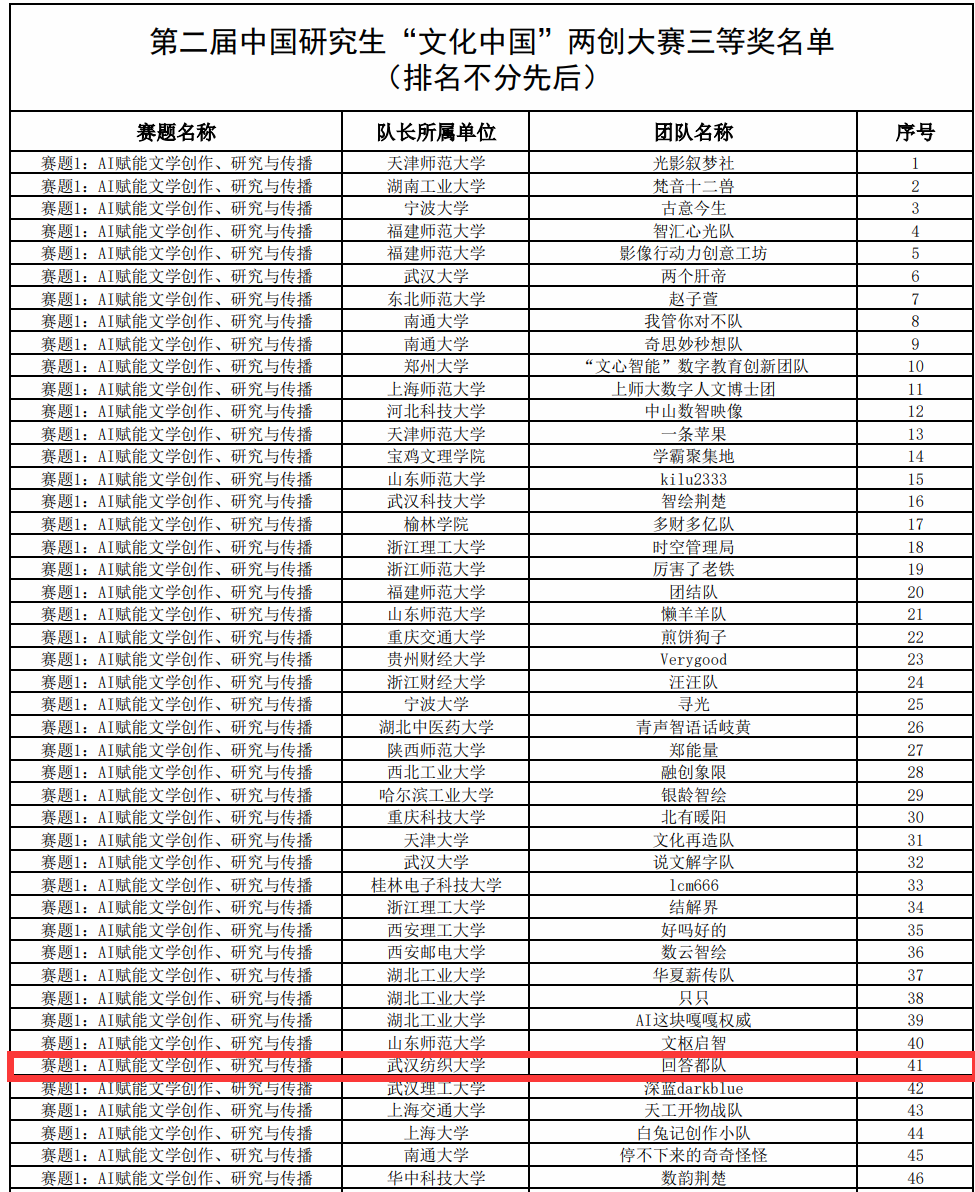 此次獲獎是我院研究生創新實踐能力的又一次展示。未來,學院將繼續以學科競賽為抓手,探索專業知識與AIGC等新興技術深度融合的創新路徑,為培養具有創新精神和實踐能力的高層次人才搭建平台,有助于研究生教育高質量开展,為文化強國建設貢獻力量。