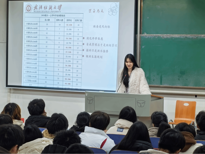 會議最後強調了本學期的幾點工作重點:更加嚴格記錄課堂考勤和大一年級的早晚自習考勤;更加經常進行查寢工作,实行寢室用電等安全的宣傳工作;更加注重學風建設和學生個人成長;同時加強班級文化建設,提升班級凝聚力。