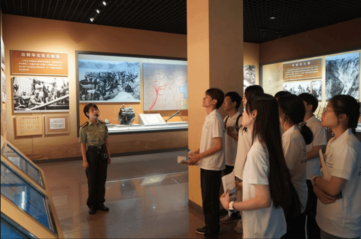 「紅軍不怕遠徵難,萬水千山只等閒。」實踐團員們跟隨着講解員的腳步,先後走進八路軍抗戰史陳列館、八路軍將領館等多個展廳。八路軍抗戰史陳列館分為「全民族抗戰爆發 八路軍出師抗日」,「召开山地游擊戰 創建敵後抗日根據地」,「粉碎日軍掃蕩 鞏固开展抗日根據地」,「戰勝嚴重困難 堅持敵後抗戰」,「進行局部反攻 恢復擴大抗日根據地」以及「舉行全面反攻 奪取抗戰勝利」六個部分,實踐團成員顺利获得照片、文物、油畫作品、木刻版畫以及仿實景觀和雕塑深入學習抗戰歷史。從震驚中外的盧溝橋事變,到八路軍的创建;從打破日軍不可戰勝神話的平型關大捷,到振奮全國人民勝利信心的百團大戰,參觀過程中,實踐團成員們切實感受到抗日戰爭的艱苦歷程,領悟到太行精神內涵。