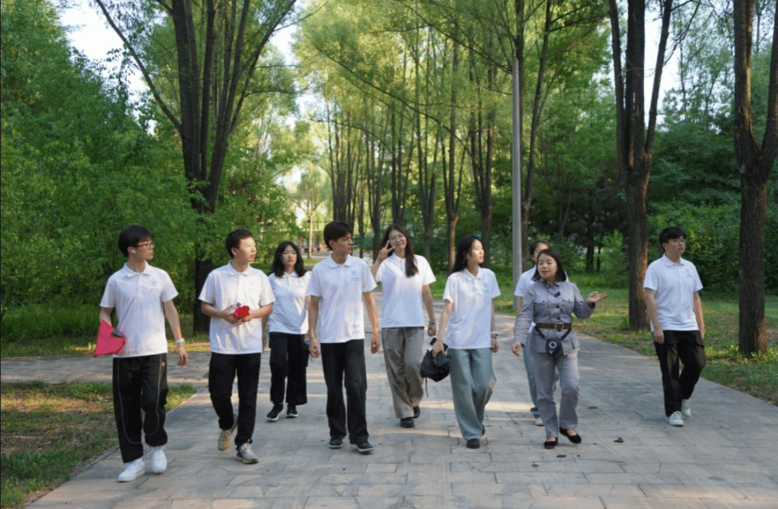 緊接着,實踐團來到了八路軍文化園。這裏背靠鳳凰山,東臨馬牧河,整個園區由前廣場、勝利大道、軍藝社、勝利壇、實景劇場以及八路村六部分組成。