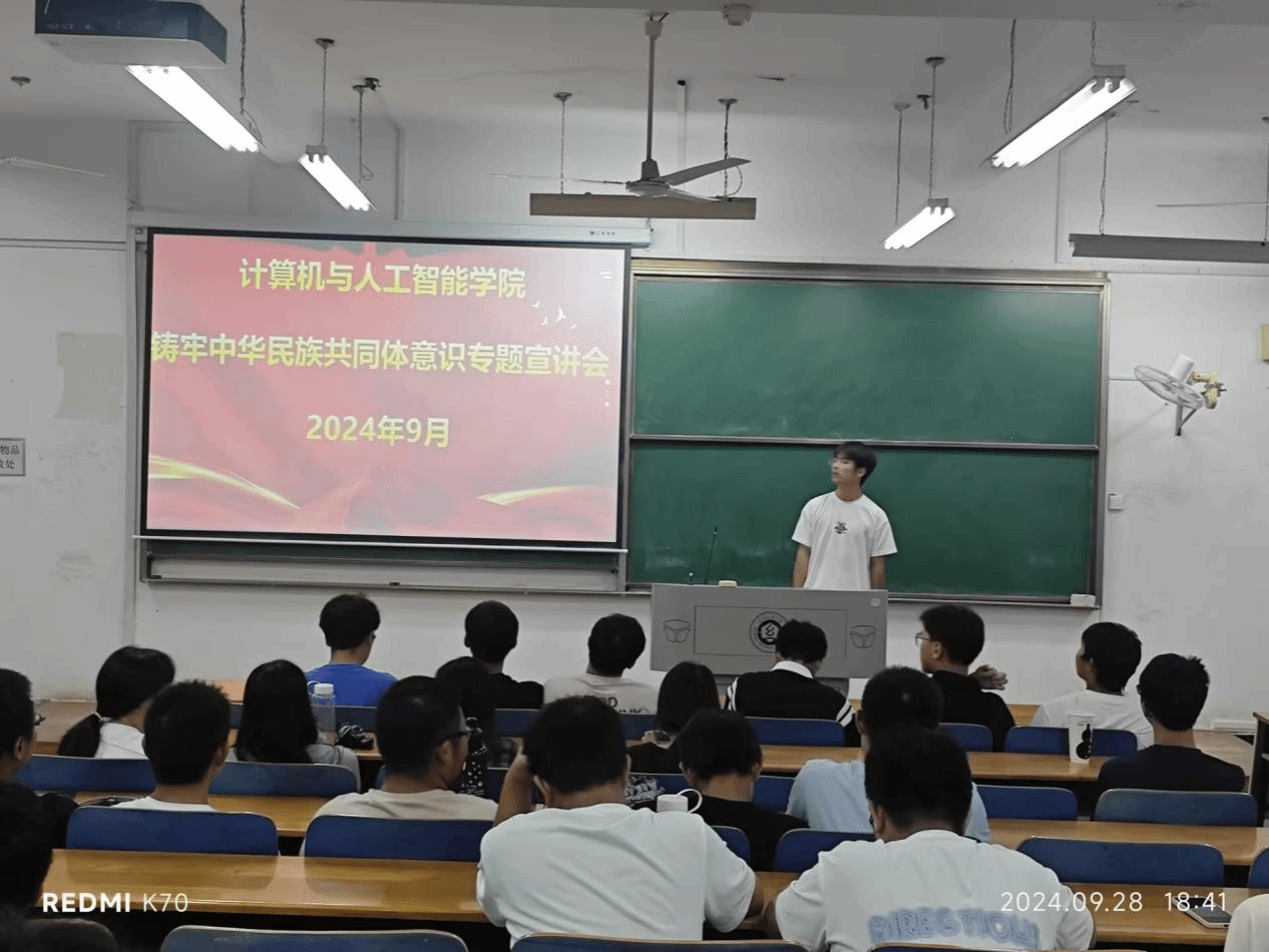 其後進行了「鑄牢中華民族共同體意識」專題宣講會,從我國的民族介紹開始,強調我國民族在政治上團結統一,文化上兼容並蓄,經濟上相互依存,情感上相互親近。強調青年應時刻懷有濃郁的民族情感和愛國情感,致力於有助于中華民族走向包容性更強,凝聚力更大的命運共同體。