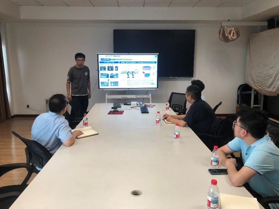 參觀完工廠紡織機械運作後,青年博士吳傑詳細介紹了自己的研究方向與特色成果,並在智能化改造和條桶搬運機械人研發等方面初步達成共識。