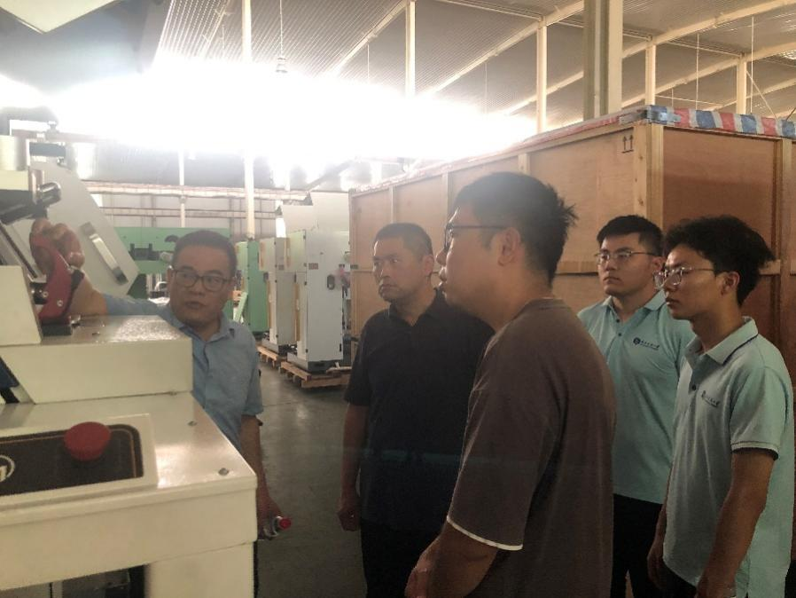 魏雄一行在董事長沈方勇的介紹下,分析該公司的歷史沿革、現代化轉型和技術革新等方面的情況。隨後,由自動化部長王衛帶領魏雄一行參觀紡織機械工廠,深入分析並條機、細紗機等紡織機械的工作場景與實際應用。