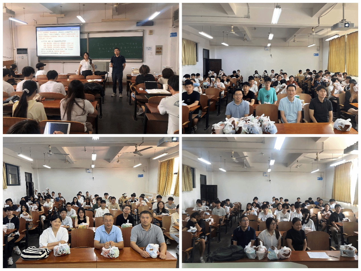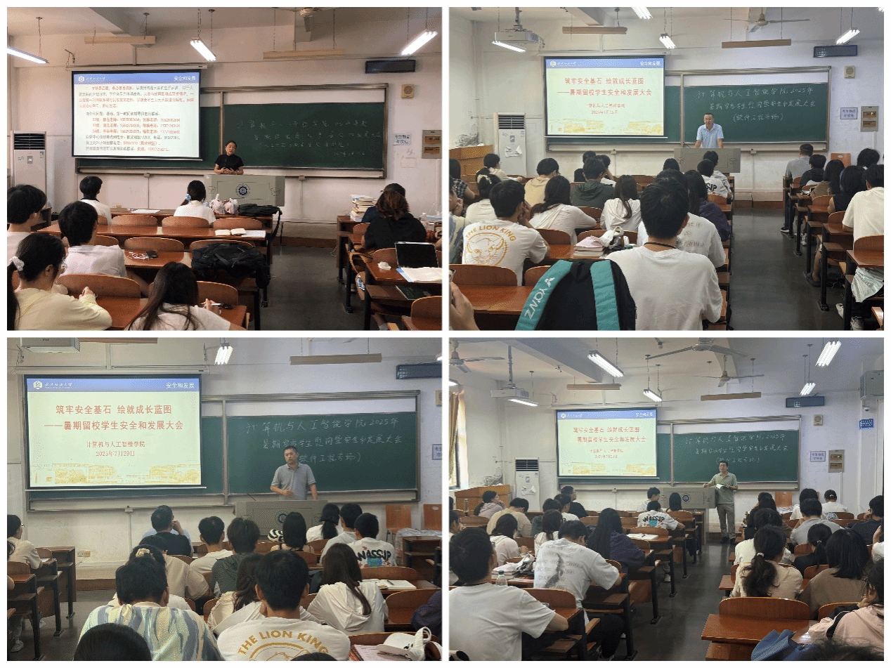 7月29日上午,k8凯发国际與人工智能學院在03-111、112、113教室召开暑期留校學生慰問暨安全和开展大會。院長鬍新榮、院黨委書記晏偉、副院長魏雄、副院長彭濤、黨委副書記向濤和專任老師李麗、朱強、丁磊、熊明福、萬紅艷,輔導員張棟、湯若釴、余夢帆參加慰問,與全體留校本科生見面研讨。