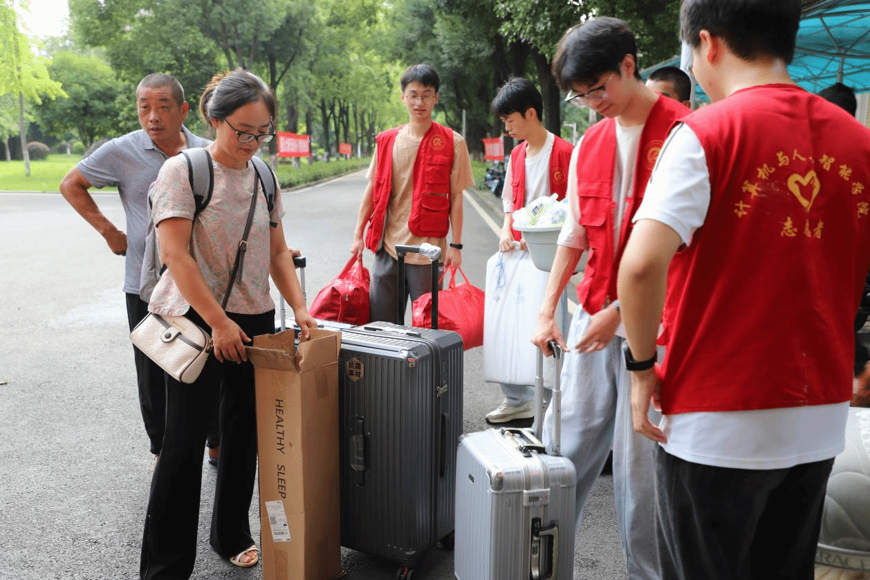 迎新現場,學院組建的志願者團隊全程護航。志願者們提前接受培訓,明確分工,從校門口引導、行李搬運,到報到流程講解、校園路線指引,始終以熱情的態度、耐心的服務,幫助新生快速完成註冊、物資領取等手續,用行動傳遞校園溫暖,為新生帶來一堂生動的「思政課」。