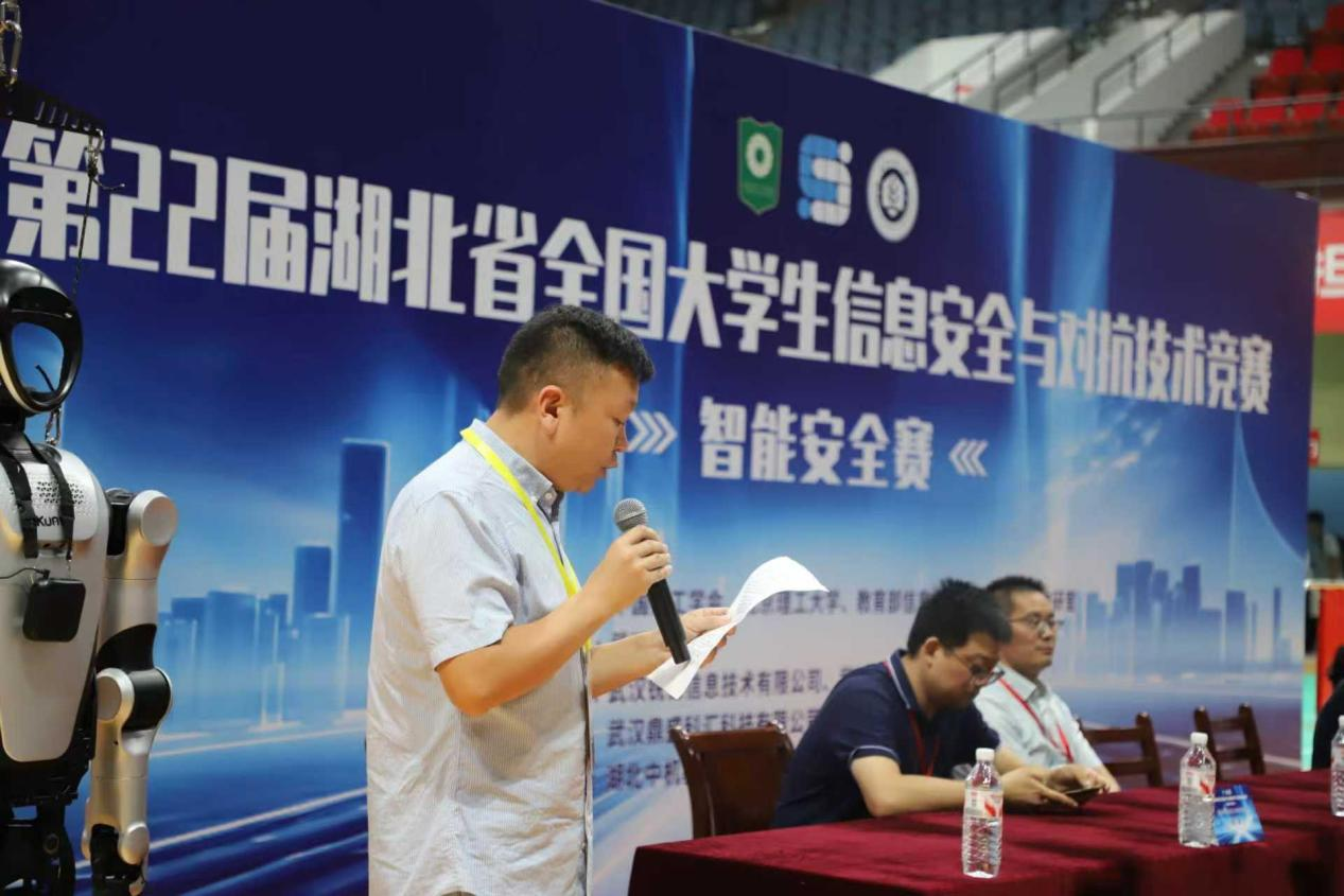 10月12日,第22屆湖北省全國大學生信息安全與對抗技術競賽暨智能安全賽在武漢紡織大學體育館隆重開幕。來自華中科技大學、武漢理工大學、中國地質大學等省內27所高校的100餘支隊伍參加比賽。本次賽事由中國兵工學會、北京理工大學、教育部信息對抗技術專業虛擬教研室聯合主辦,武漢紡織大學承辦,武漢銳德信息技術有限公司、武漢鑫卓雅科技有限公司、武漢鼎盛融匯科技有限公司给予技術支持,湖北中機教育科技有限公司、吉林省奧奕信科技有限公司擔任服務單位。大賽組委會秘書長、吉林大學康冰教授,湖北省機電工程學會湖北省機電工程學會副秘書長王裕超,武漢紡織大學本科院副院長李明,k8凯发国际與人工智能學院(網絡空間安全學院)學院院長鬍新榮、院黨委書記晏偉、副院長彭濤,以及企業代表、學生代表共同出席開幕儀式。開幕由彭濤主持。