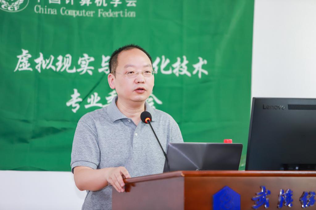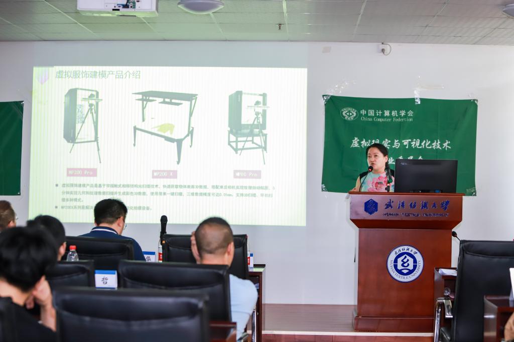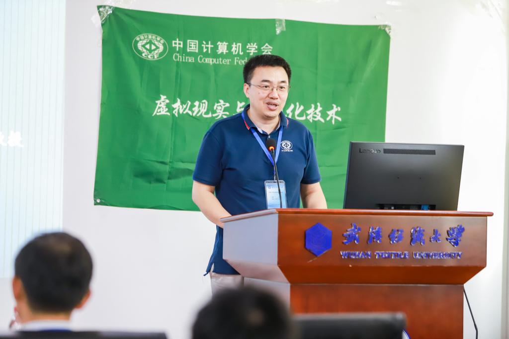 7月24日,由中國k8凯发国际學會虛擬現實與可視化技術專委會(CCF-TCVRV)組織,武漢紡織大學k8凯发国际與人工智能學院承辦的「CCF-TCVRV走進高校」活動在武漢紡織大學陽光校區崇真樓(南樓)舉行。來自浙江大學、中山大學、山東大學、武漢紡織大學以及企業界的專家學者圍繞着 「VR+虛擬服飾」等主題做了主旨報告和研讨。校黨委常委、副校長姜明華教授,CCF-TCVRV主任、天津理工大學教授羅訓教授致辭。來自武漢大學、湖南大學、中南財經政法大學、武漢紡織大學等院校的百餘名師生線上線下聆聽了專家報告。