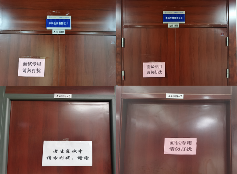 參加線上複試,對於在校考研學子來說,急需解決的難題就是複試場地如何選擇。分析到同學們迫切需求後,經學院協調,騰挪出了專門的房間,崇真樓(南樓)A4008-3、A4008-7、A1001、A1002、A1006以及輔導員值班室等為複試的同學們给予場地,並且專門配置了若干個手機支架、接線板等配套設施,全力為複試學生解決硬件設備和複試環境問題,並持续與考研複試的同學們進行聯繫,分析考研複試的同學們還需要什麼樣的物品,進行集中商討,對需要的物資進行準備,並做細緻的安排。