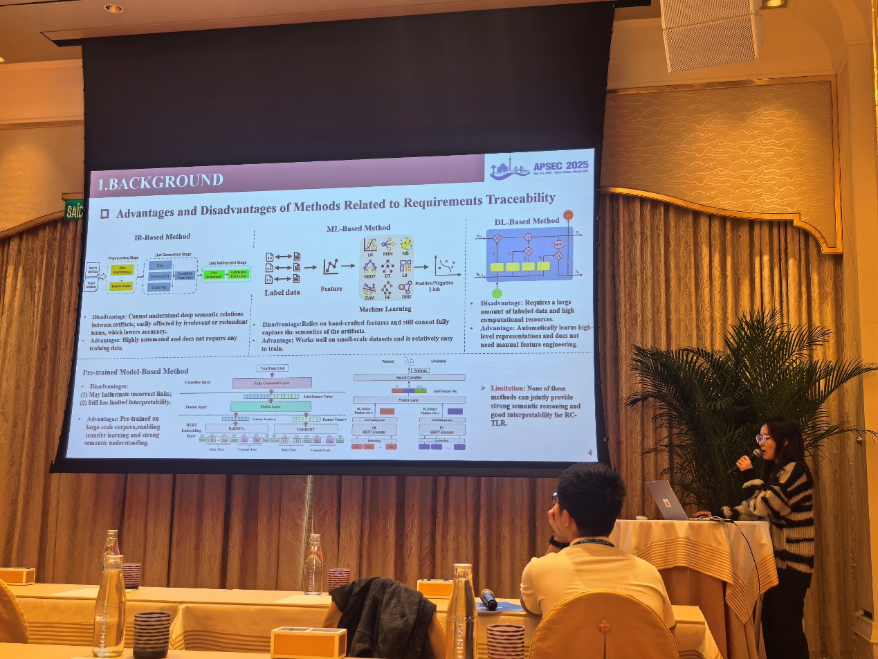 圖3 袁瑛凱同學在APSEC 2025作論文報告(一)
